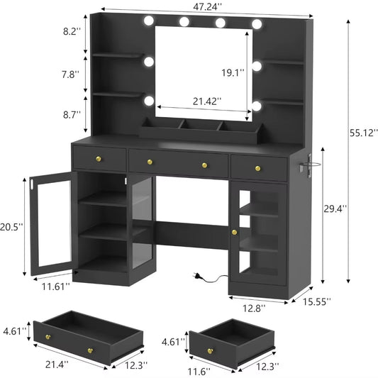 Vanity Desk with Mirror and LED Lights - RGB with 3 Drawers